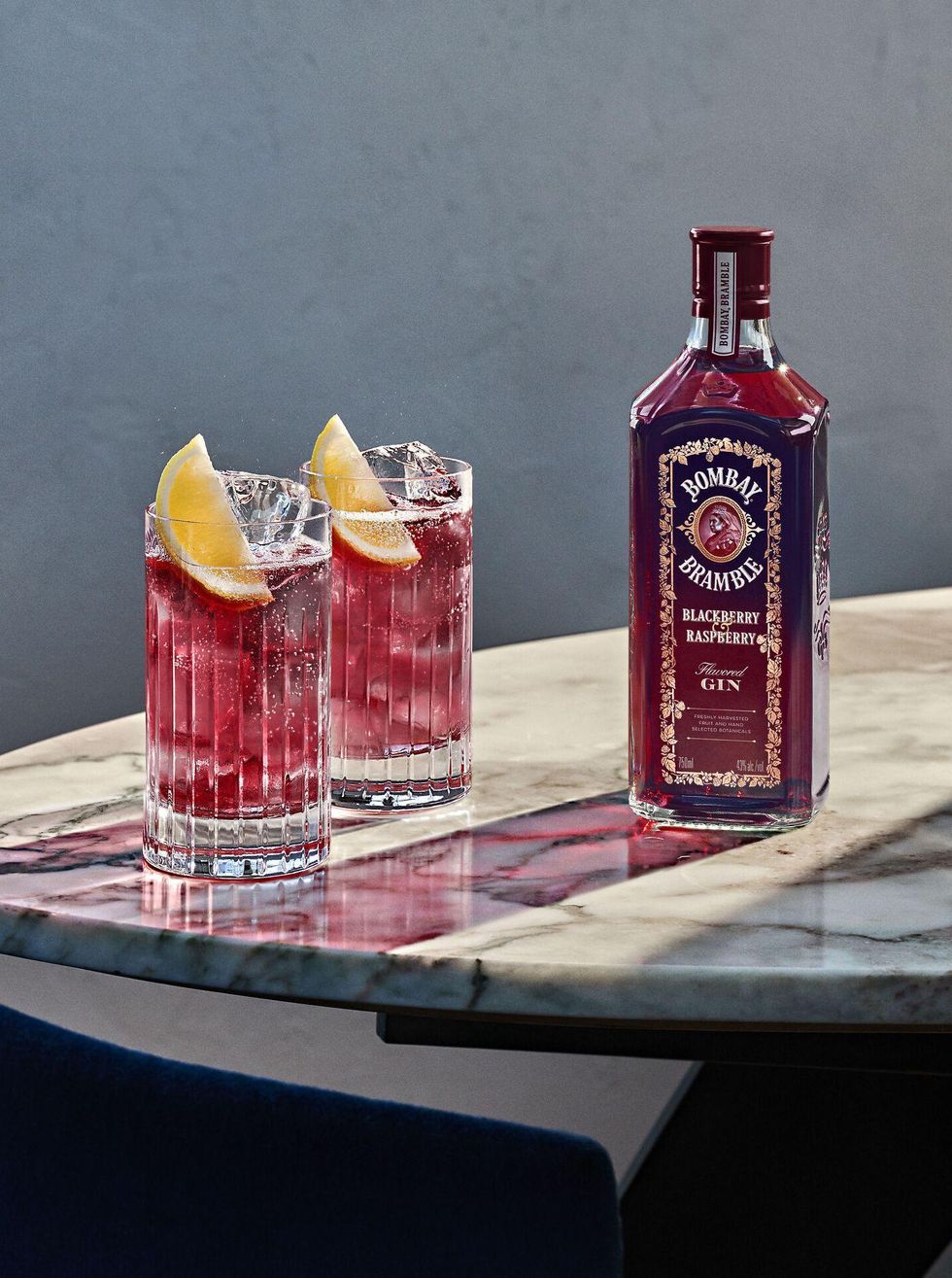 - Pour the Bombay Bramble into a glass