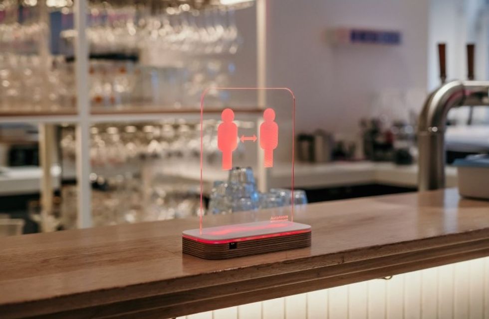 The sign gets even angrier when faced with more serious transgressions, flashing red when someone steps within one metre of the other person. There's even an option for it to emit an audible alert.