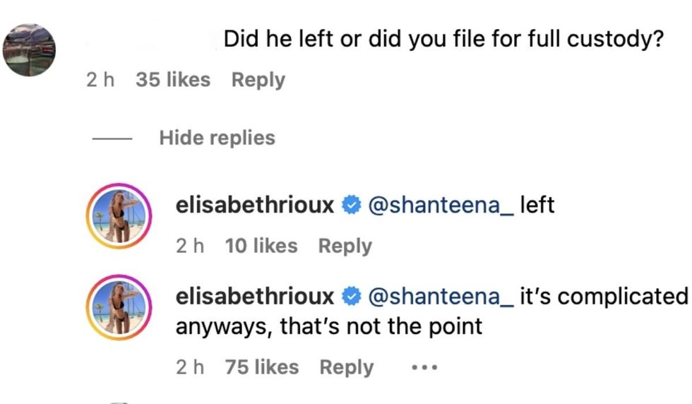 While she didn't share much, Rioux did reply to some of the comments, saying that things are "complicated," and that "when you don't know [the full story], you don't talk."