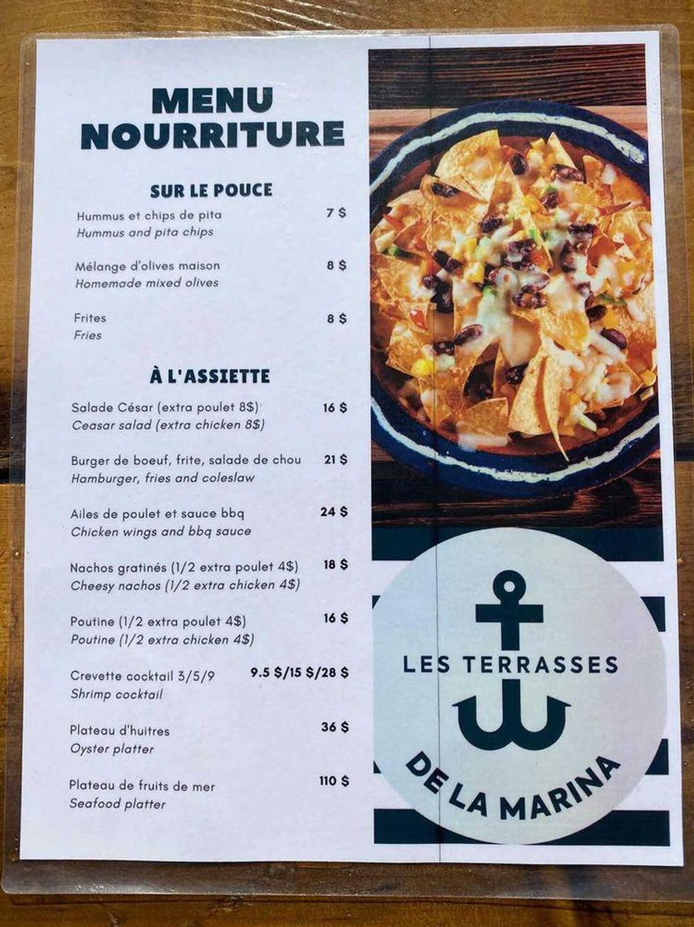 Terrasses de la Marina's new menu will offer oysters, Quebec cheese platters and charcuterie boards, along with summer staples like fries, burgers and wings.