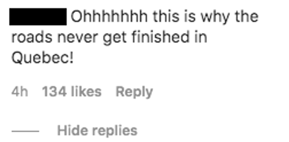 The overall eye-rolling setting has the comment section filled with Montrealers and people from all over Quebec chiming in about the construction.