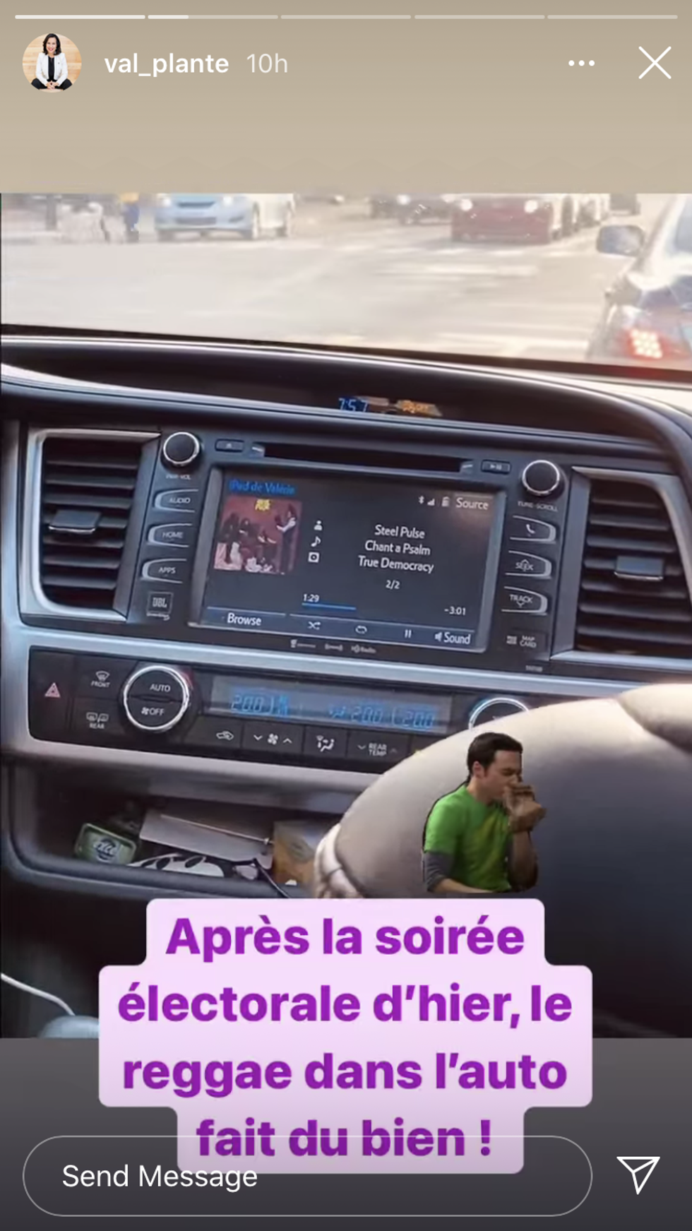 She captioned it: "After yesterday's election night, reggae in the car is doing a lot of good."