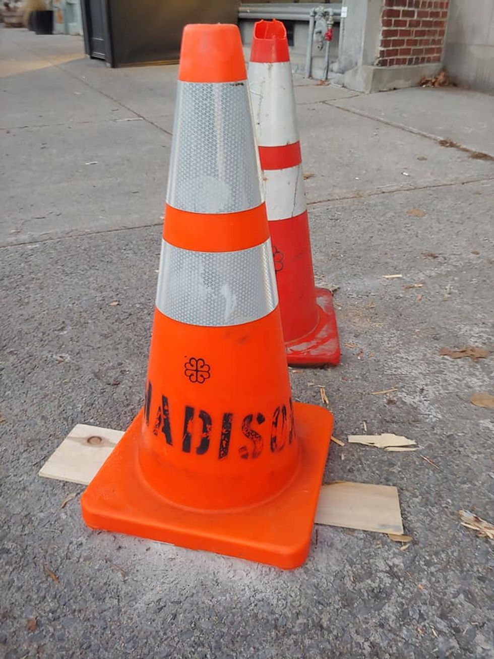 By the morning of December 19, the monolith was gone. In its place? Montreal's signature orange traffic cones.