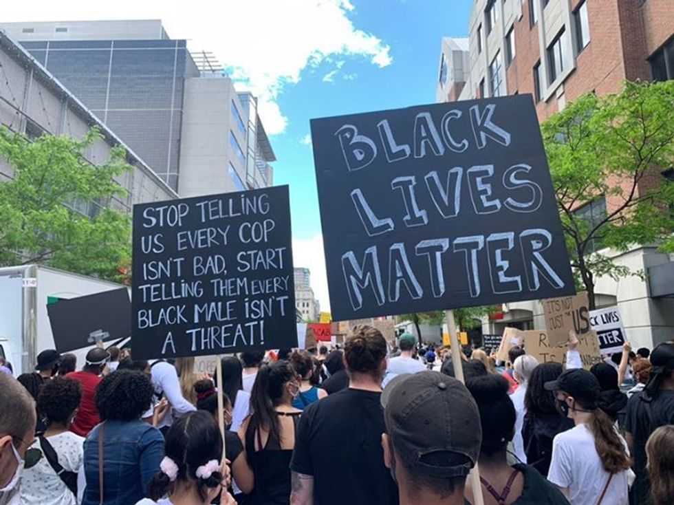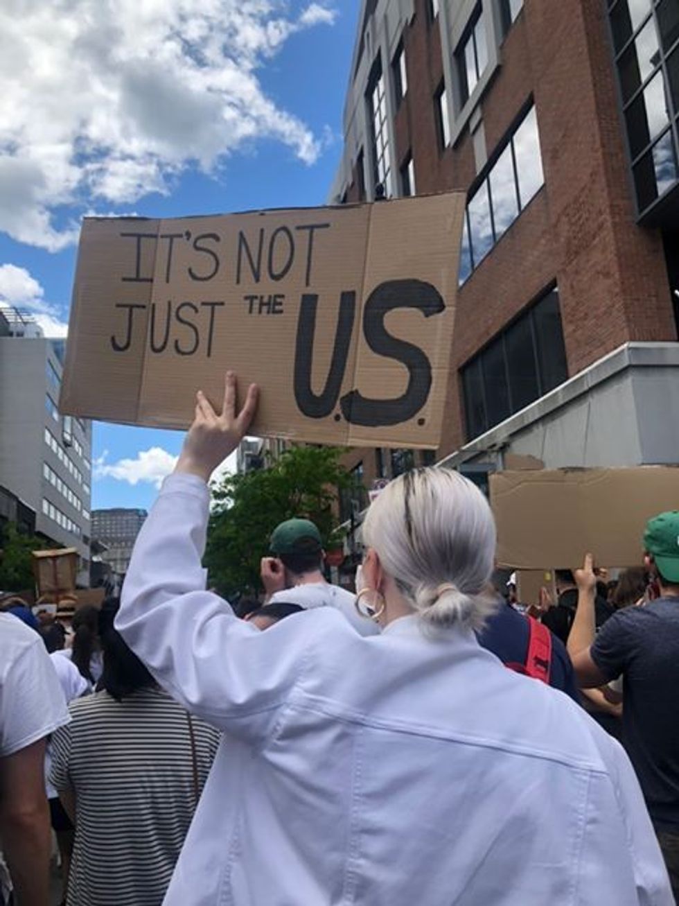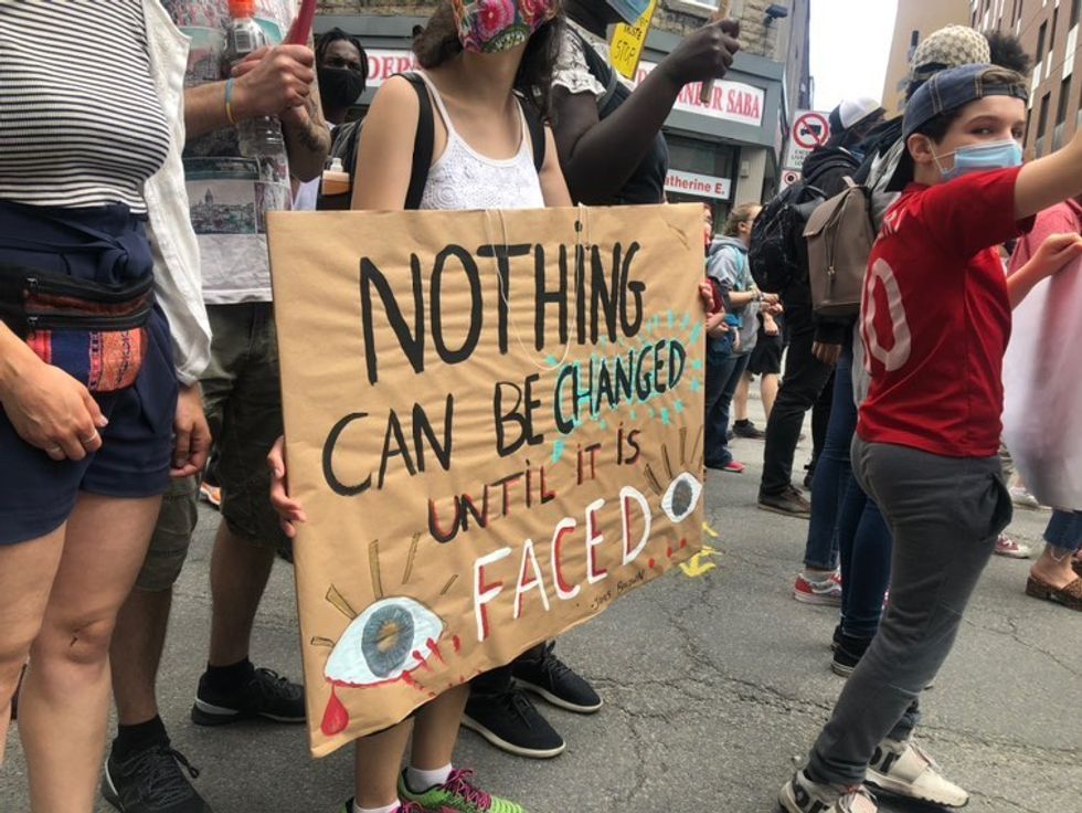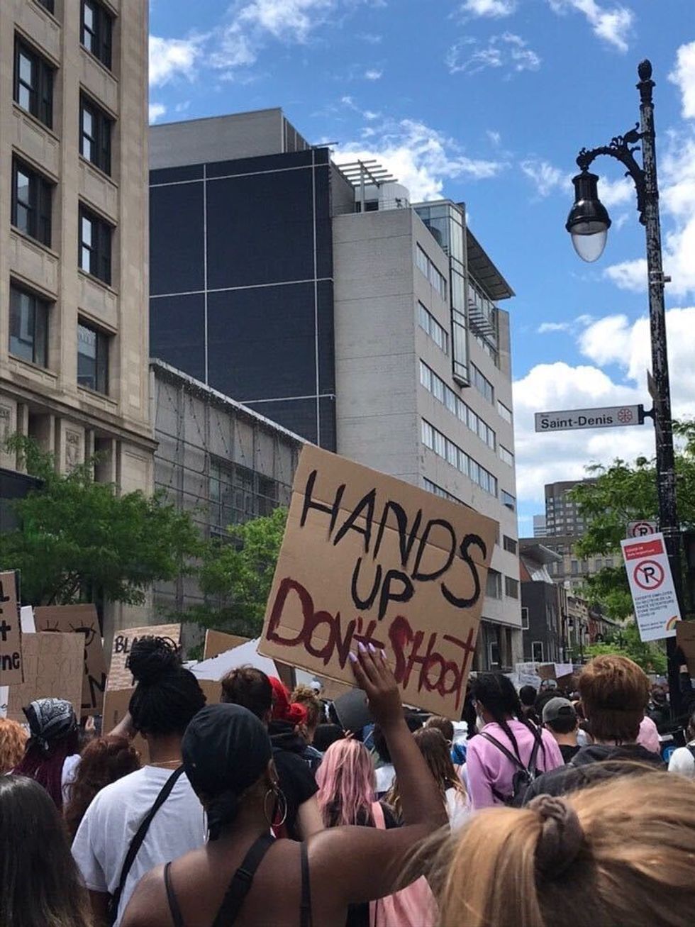 Thousands of individuals joined together in solidarity in downtown Montreal on Sunday, June 7 to denounce police brutality and racism. A similar protest took place in Montreal a week before. We've gathered photos of some of the posters that people held up high during this Sunday's demonstration.