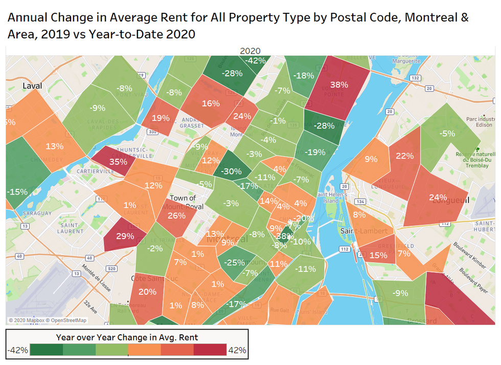 This Map Shows Where Average Rent Prices Went Up The Most In Montreal in 2020