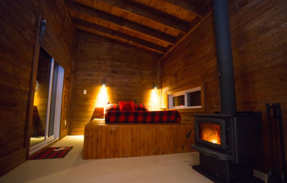 Why You Need To Go: This charming cabin has a magnificent terrace that leads to an outdoor spa, making it a perfect spot to relax for the holidays. You can even get there by bus from Montreal.
