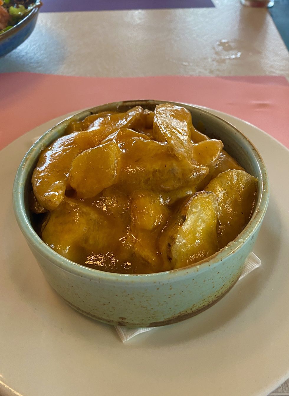 The cheese wasn't squeaky, which was expected considering I was 8,695 kilometres away from Quebec and securing cheese curds in the middle of Lebanon might pose a challenge. Nevertheless, the cheese delivered. The very first swift motion of my fork yielded a stretch of melted cheese that immediately had me salivating. The taste was enjoyable, but I couldn't quite put my finger on the specific ingredients.