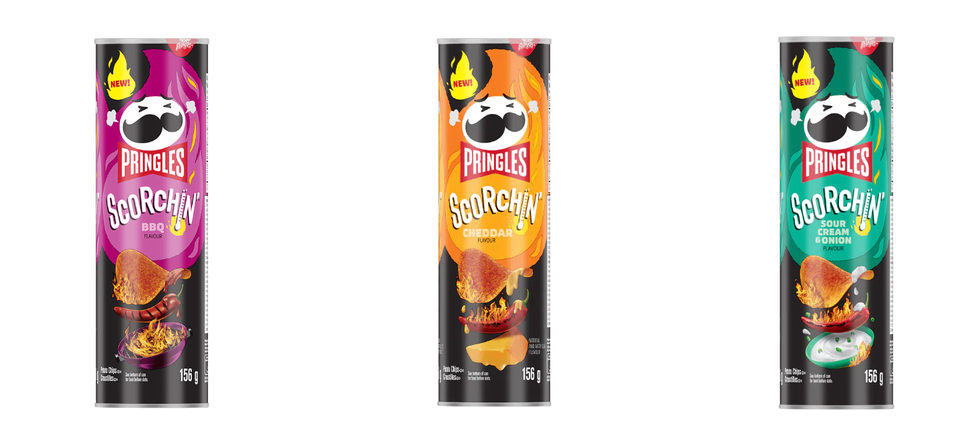 These Pringles turn up the heat with spice mixed with either a smoky/sweet brown molasses BBQ, sour cream and onion, or hot cheddar flavour.