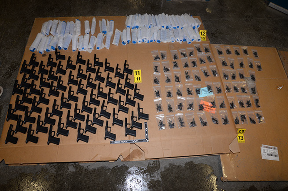While searching the vehicle and a trailer, the officers found five hockey bags full of disassembled handguns, according to a report published by the federal police force.