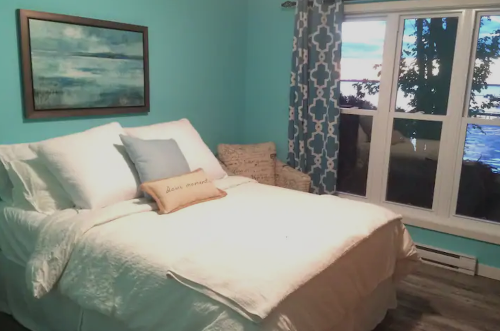 Why You Need To Go: This Airbnb is yet another place that's great for a getaway with your squad. This listing has so much room for everyone, including a massive lot, a spacious terrasse with a hot tub, three floors, an office area and a beautiful bathroom. Enjoy the view of the lake from this super serene spot for a weekend of relaxation and fun.