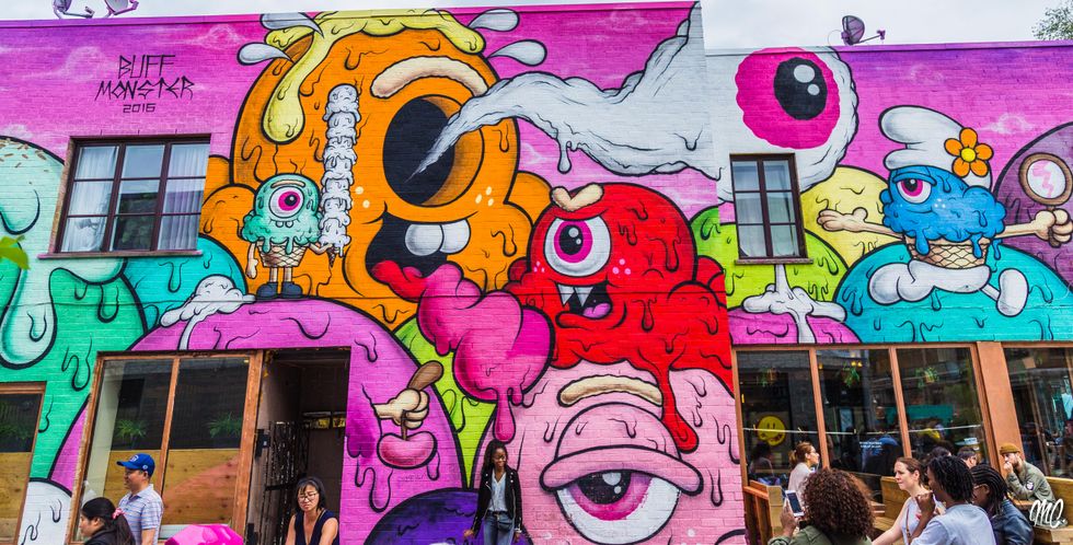 Why You Need To Go: Burnt Toast's bubblegum-like depiction of three squiggly people is sure to put a smile on any onlooker's face. The recently painted mural was sponsored by Light and Free yogurt, which posted about its meaning: "Being seen and being recognized for who you are is an integral part of feeling good about yourself. So let your uniqueness shine."