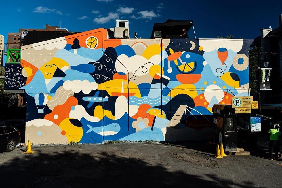 Why You Need To Go: Chances are you've seen this Montreal-based artist's work across the city — whether in Quartier Dix-30 or on Montreal's streets. Belgian Moon beer commissioned the vast, multicoloured mural to match its limited-edition beer packaging.