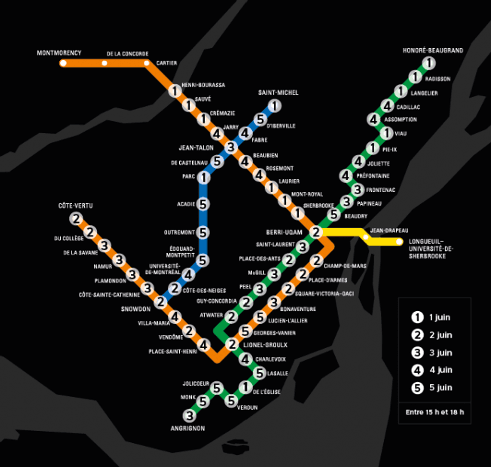The government strongly recommends that you wear a mask on public transit — and the STM is stepping up to make that possible. Since May 25, the transit company has been giving away free reusable masks in the Montreal metro system. In the week of June 1, it released a map showing where exactly the giveaway would take place each day.