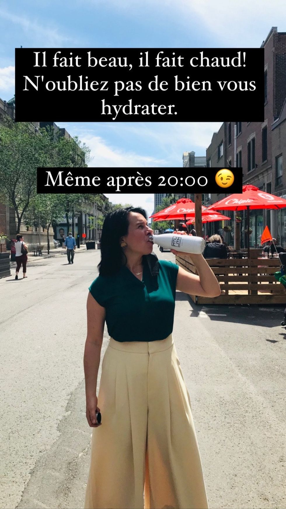 A translated version of her caption reads, "It's nice out, it's hot! Don't forget to stay hydrated. Even after 8 p.m." The mayor included a winky face at the end of the post.