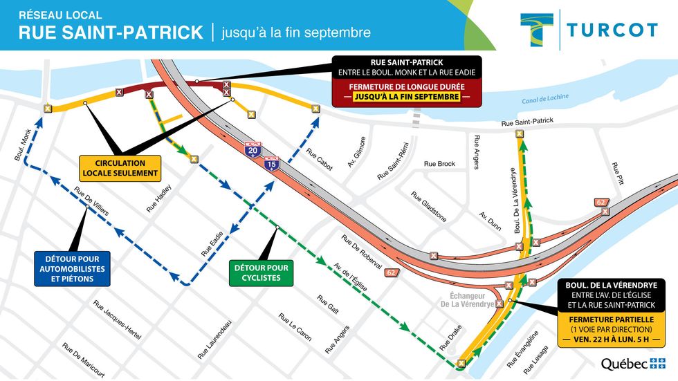 Rue Saint-Patrick will be closed until the end of September between rue Eadie and boulevard Monk.