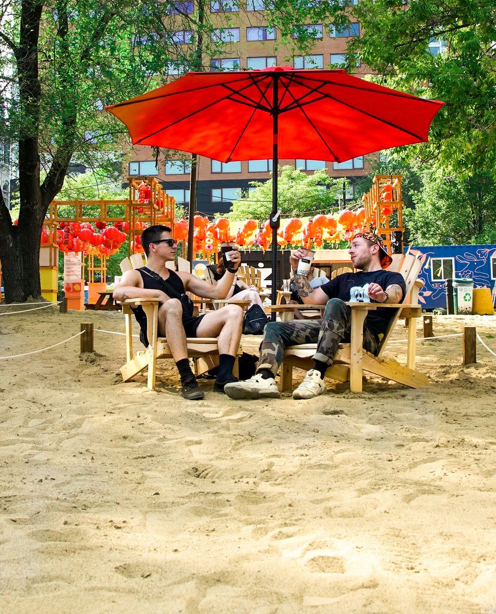 Montreal's Chinatown Has A Huge New Terrasse With An Urban Beach & Hanging Lanterns