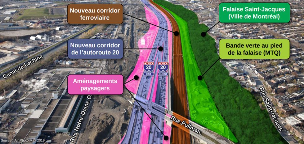 Montrealers will soon have a new urban playground to enjoy. The Ministry of Transport (MTQ) and the City of Montreal have unveiled their plans for an ambitious and expansive green space at the foot of what's known as the "falaise Saint-Jacques" near the Turcot Interchange.