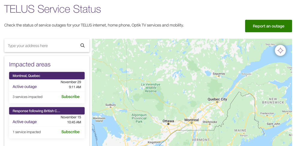 TELUS reported that an active outage, which began at 9:11 a.m. on Monday, November 29, is affecting its services.