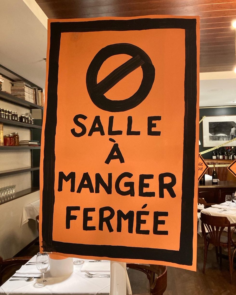 Made with the familiar orange colour and evoking the classic "DÉTOUR" and "FERMÉ" road signs, the decorations at Tavern on the Square are a clever way to have fun during tough times.