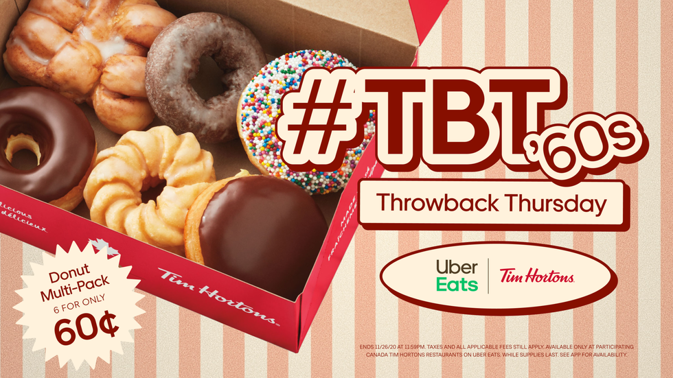 "We're thrilled to kick off with Tim Hortons donuts — and encourage Canadians to head back to the 1960s with us and enjoy a 6 pack of donuts for just $0.60."