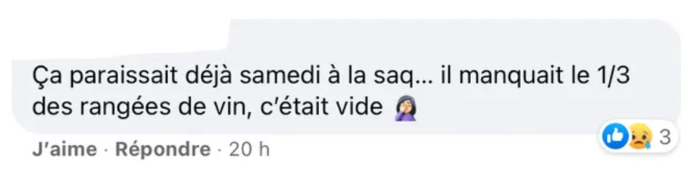 "It already looked like this Saturday at the SAQ... One-third of the wines were missing, it was empty," another person explained.