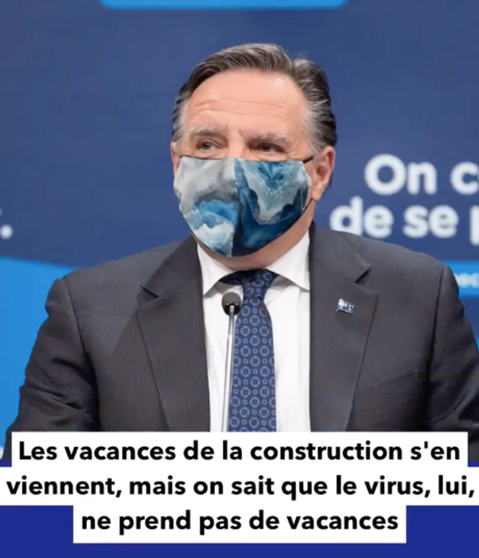 During the same conference, the premier announced that masks will soon be mandatory in all indoor spaces. He also reminded Quebecers that although vacation time is approaching, COVID-19 doesn't take any time off.