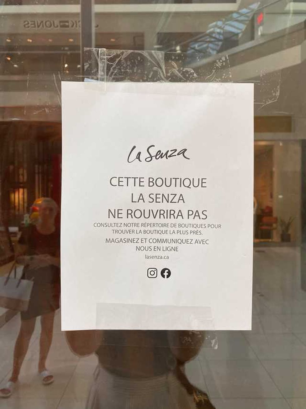 Branches that will no longer be welcoming new customers have posted a sheet of paper on their entrances indicating that "this La Senza store will not reopen."