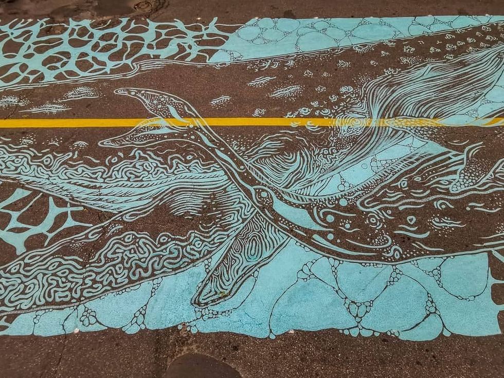 If you've walked along Mont-Royal avenue recently, you've probably noticed a few things looking different. For starters, a large part of the street has become pedestrian and biker-only. Another difference is the many blue-painted murals that have appeared on the ground. One of them, titled "O SEA," pays tribute to the beloved Montreal whale, which was caught making its way through the Saint Lawrence river a little over a month ago and was shortly found dead afterwards.