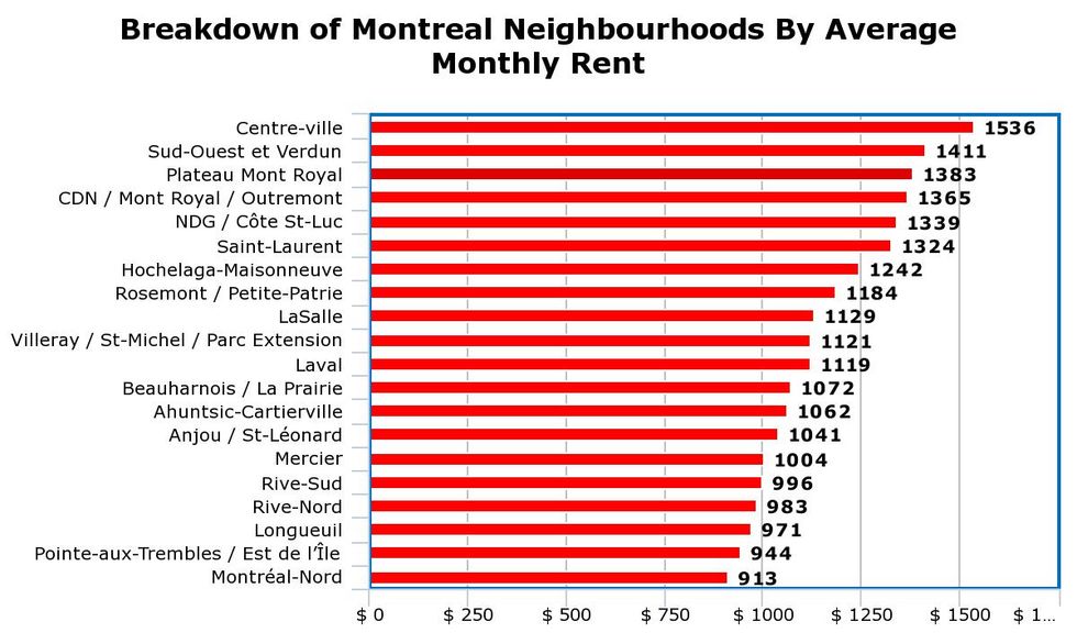 Another pricey neighbourhood is the Plateau-Mont-Royal borough where it will run you $949.