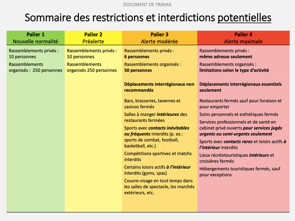 On September 16, public policy analyst Patrick Déry leaked a government presentation on Twitter that explained — in detail — what our new reality could look like at each different level.