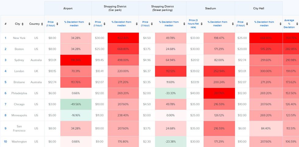 The list took a look at major cities around the world and calculated the average price of parking per hour in common places, like airports, stadiums and shopping centres. They also found the median price, overall.
