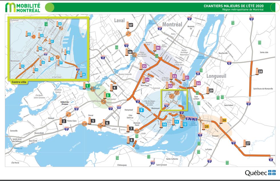 Throughout the summer, 38 construction projects will be active in Montreal.