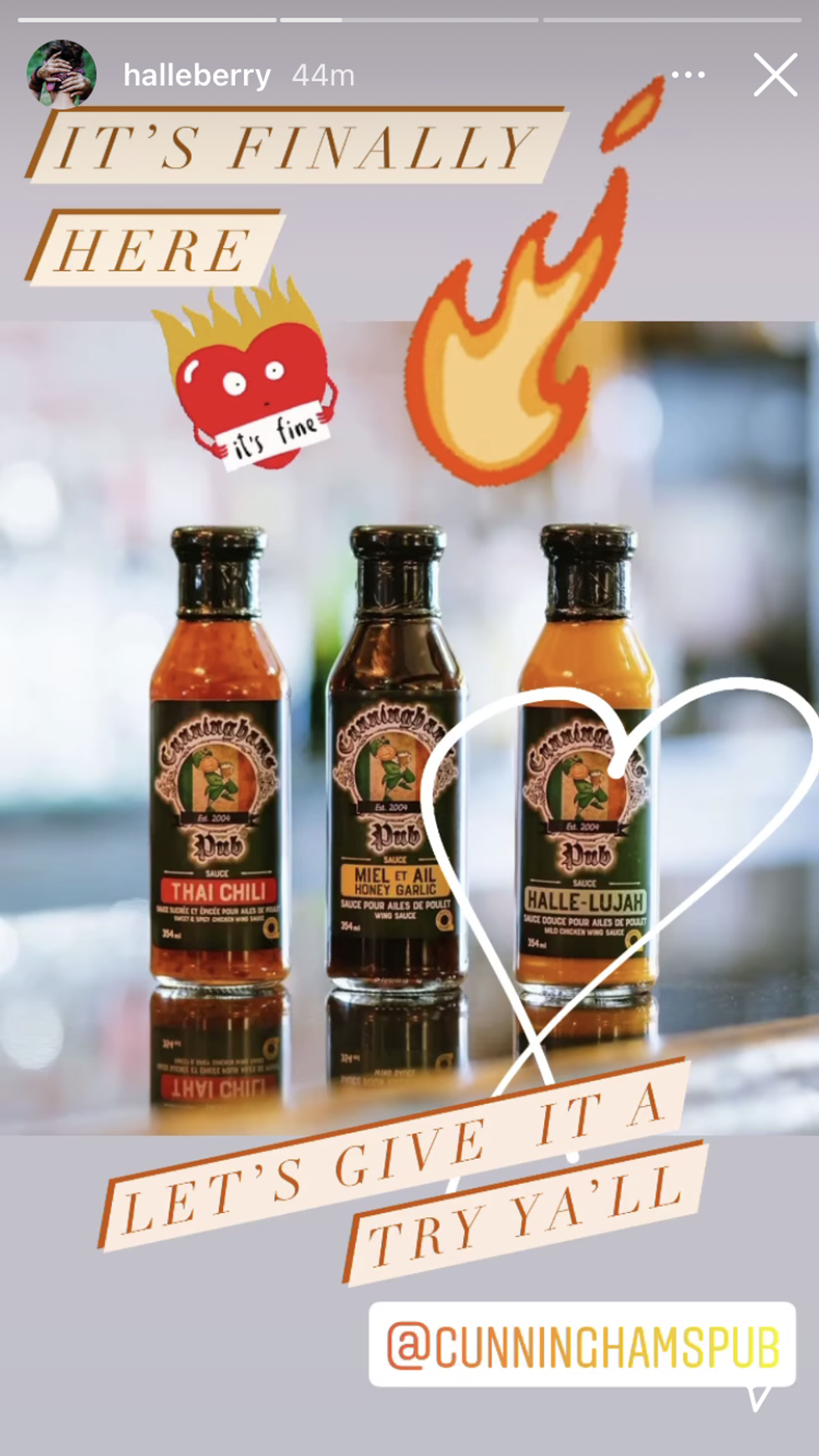 The Montreal pub where superstar Halle Berry says she had "some of the best hot wings I've ever tasted in my whole life" has named a sauce after her — and you can finally get it, along with two of Cunningham's other wing sauces, in grocery stores now.