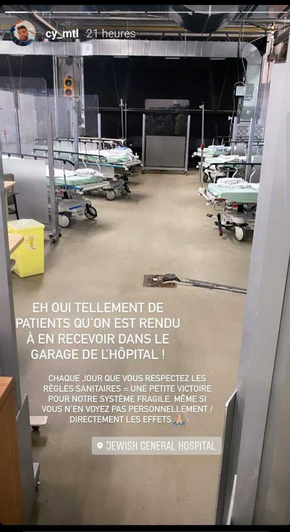 An Instagram story recently posted to social media by a medical student shows stretchers set-up in the Montreal Jewish General Hospital garage.