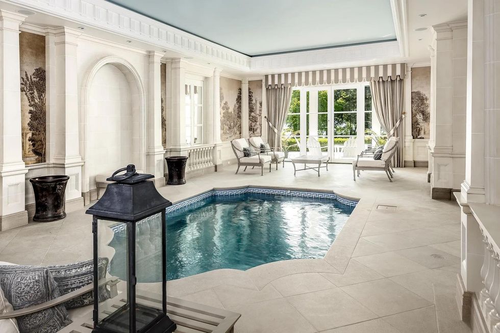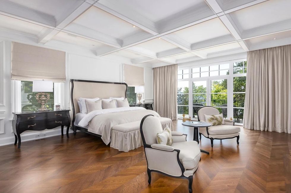 The sumptuous residence features four large bedrooms, five bathrooms, one powder room, a living area and a kitchen.