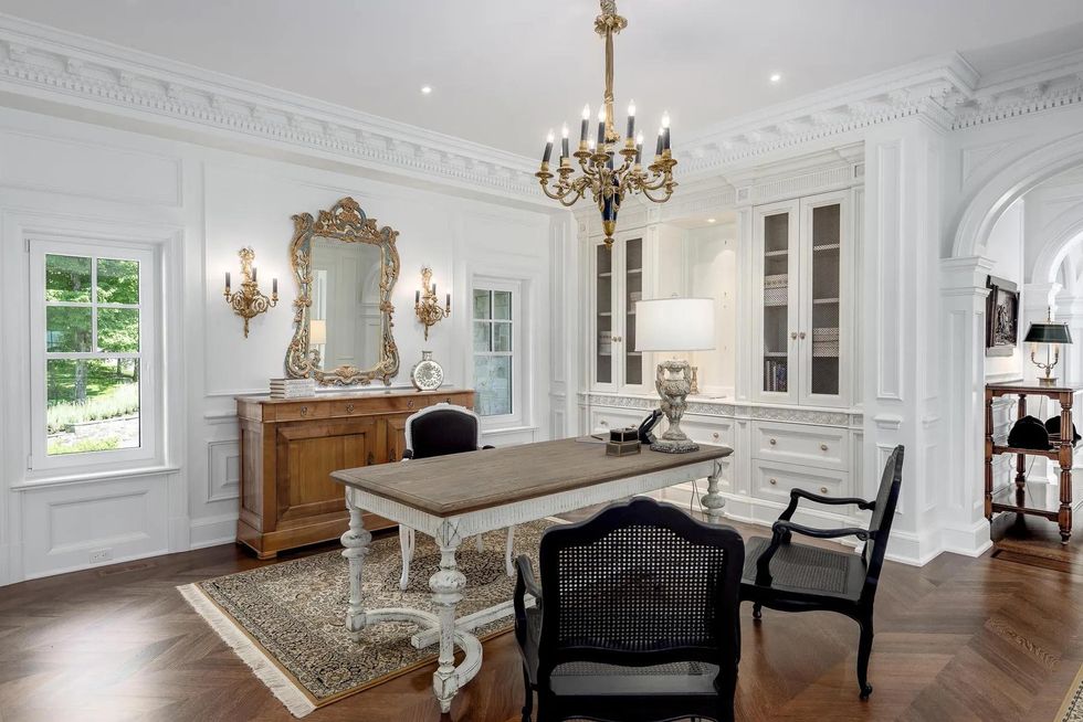 The penthouse is adorned with plaster mouldings, herringbone floors, and nearly 13-foot high ceilings.