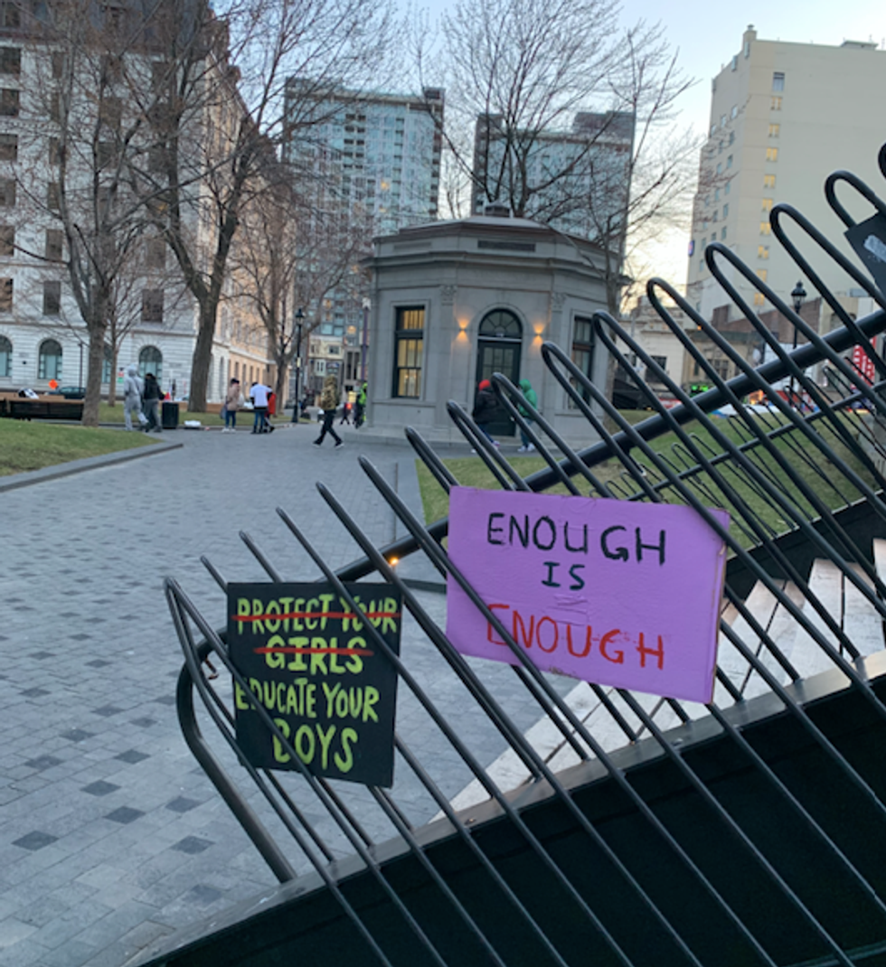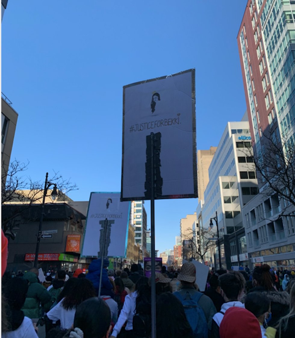 On April 3, a march against domestic violence "in the name of Rebekah Love Harry," a 29-year-old woman who died in hospital three days after an alleged assault by her boyfriend, took place in Montreal.