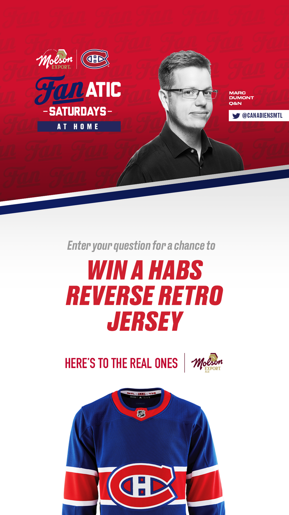 To participate, fans need to submit a question to the Q&A via Facebook or Twitter. Whichever fan has their question selected and answered by Marc during the Q&A will be Le Vrai Fan and get a retro Canadiens jersey!