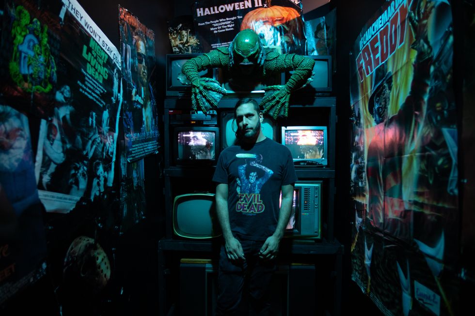 Yet, the experience can swiftly shift from the cozy winter chill to a whole different kind of chilling. Another room will immerse you in an eerie schlock horror tableau. The static hum of vintage TVs fills the room with scenes from B-movie chillers. A gallery of horror classics like Halloween and The Evil Dead deck the walls, leading your gaze to the pièce de résistance — a life-like Creature from the Black Lagoon emerging from one screen.