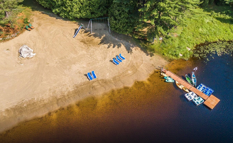 If you've ever dreamt of living together with your friends in nature, now's your chance. This compound for sale in Rawdon, Quebec comes with six adorable chalets around a private lake complete with its very own beach. The surrounding woods make this an ideal spot to spend the summer.