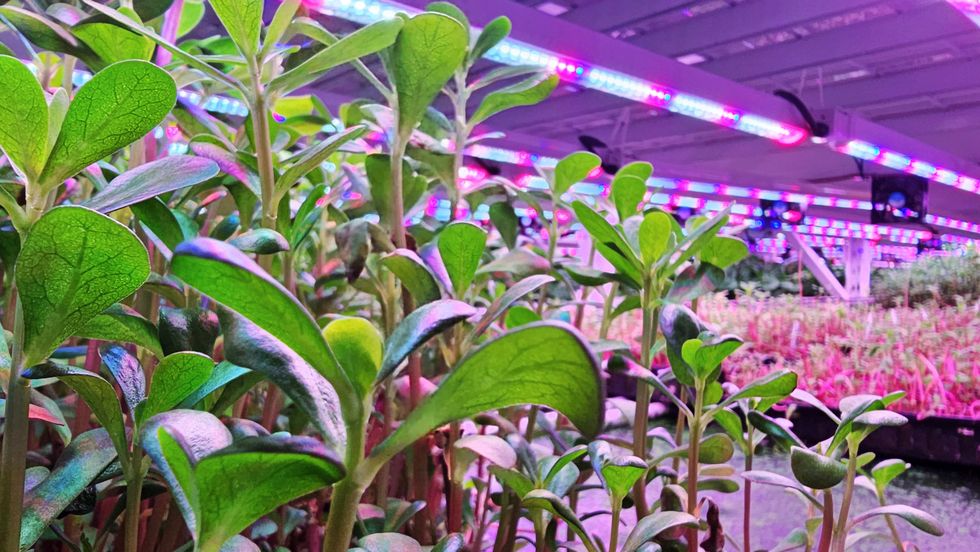 Lettuce types, like Boston and Romaine, for instance, flourish under red-tinted light. "We maintain those products under that light. But kale didn't give us great yields in the same conditions so we decided on different lights," she said.