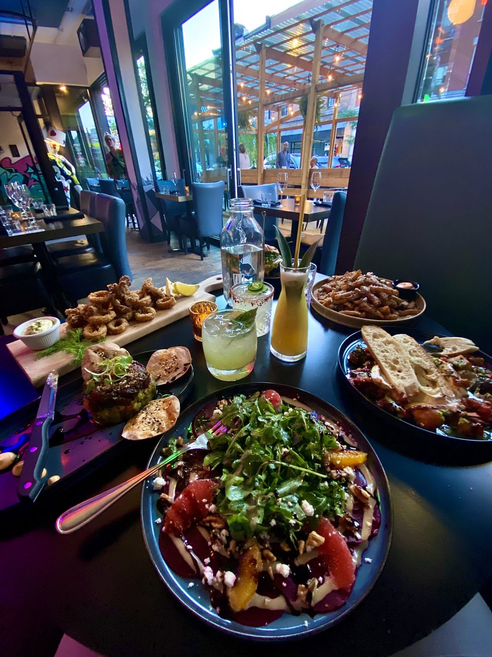 To start, the beet salad ($16). A bottom layer of sliced marinated beets is topped with arugula, roasted pecans, sections of orange and grapefruit, goat cheese, tahini and drizzled with a balsamic reduction. It's a complete burst of crispy meets fresh. The crunch from the arugula and roasted pecans paired with the creaminess of the beets and goat cheese offered a remarkable mix of texture that balanced effortlessly with both the sweetness and bitterness from the citrus fruit — proving that even the most super of superfoods can be both appetizing and aesthetic.